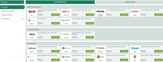 - Платежные системы ecoPayz, Neteller и другие.
