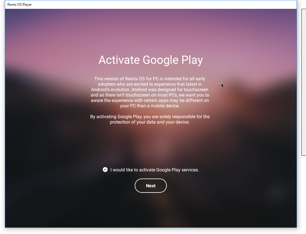 Идет загрузка Remix Os плеера, ждем некоторое время. У вас может выскочить оповещение об установки дополнительных сред. Нажимайте на кнопку "Да". У меня запуск программы занял около 5-10 минут. Не знаю, что так долго, может из за слабого железа, может так и было задумано, но не суть продолжаем дальше.